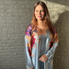 Discover the ultimate blend of elegance and style with Floral Mist. This long tunic is crafted with luxurious silk and adorned with a beautiful floral pattern in a sophisticated grey hue. Elevate your wardrobe with this stylish must-have.