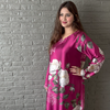 This elegant, high-quality silk long tunic features a stylish floral design, perfect for any occasion. Its soft pink color adds a touch of femininity to any outfit. Crafted with precision, this tunic is a must-have for any fashion-savvy individual.